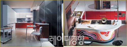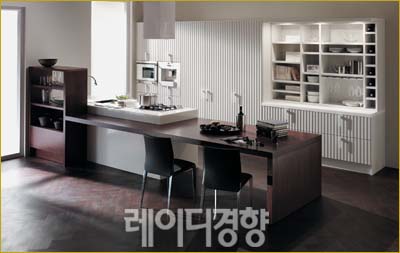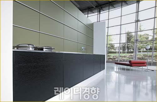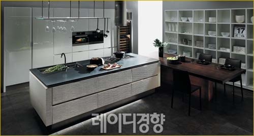 라이히트의 CONCEPT 40 일반적인 주방 개념을 뛰어넘어 기능적인 요소들을 벽면에 적용해 새로운 공간을 만들어내고 이러한 디자인적 접근법으로 주방과 거실의 일체감을 보여준다. 넉넉한 수납과 편리한 오픈 방식으로 실용성과 기능성을 강조한 것이 특징. 특히 한 번의 터치만으로 가볍게 문이 열리는 개폐 시스템을 적용해 손잡이를 없애는 등 모던함을 최대한 살렸다.