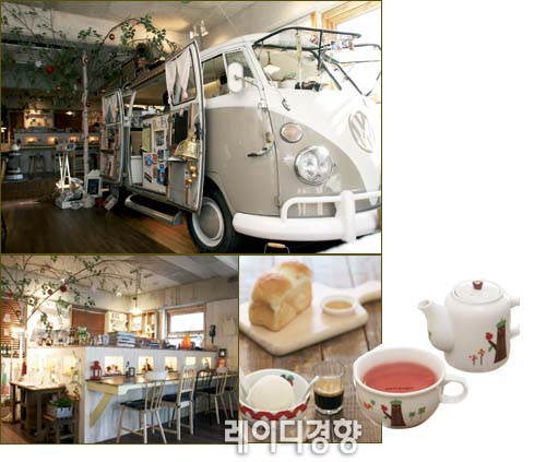 호호미욜의 문을 열고 들어서면 폭스바겐 마이크로버스가 손님을 반긴다. 주방 겸 카운터로 숍 입구에 떡하니 자리한 이 버스는 오픈하면서부터 인기를 끌었는데 이번에는 상수역 근처에 리뉴얼 오픈했다. 코지한 나무 인테리어와 따뜻한 할로겐 조명이 편안한 분위기를 연출하며 아기자기하고 사랑스러운 소품들이 가득해 먹는 즐거움에 보는 행복감까지 더한다.