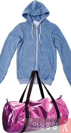 루 후드 점퍼 5만6000원, 핑크 더플 백 3만2000원·아메리칸 어패럴