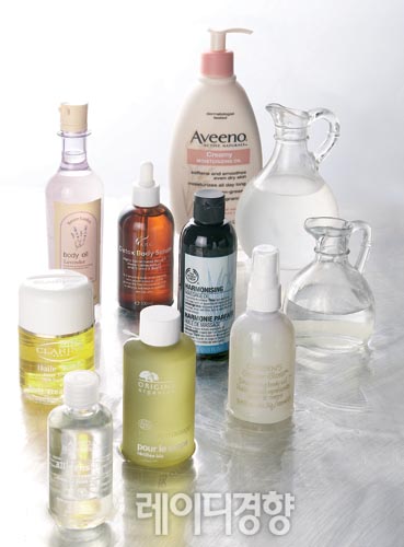 보디로션보다 사용하기 까다롭고 사용감도 좋지 않은 보디오일을 왜 사용해야 하는 걸까? 보디오일의 매력은 바로 다용도로 활용이 가능하다는 점. 피부 보습뿐 아니라 몸의 부기를 제거하거나 셀룰라이트를 없애는 전신 마사지용이나 입욕시 욕조에 살짝 풀어 사용해도 좋다. 보디오일은 원재료의 성분을 그대로 간직하고 있는 원초적인 제품이라 로션보다 보습력이 10배 이상 높다. 또 표피로 쉽게 흡수돼 바른 지 불과 20분이 지나면 혈액과 호흡으로 확인된다. 특히 피부에 물기가 살짝 남아 있을 때 바르면 수분 증발을 막아 오랫동안 수분을 머금은 촉촉한 피부를 유지할 수 있다.