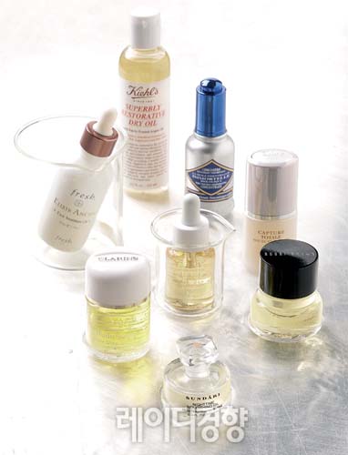 도대체 왜 지금 '오일'인가? 가을과 겨울의 큰 일교차와 차가운 바람은 피부층을 두껍게 해서 피부에 화장품이 흡수되는 것을 방해하고, 피부 각질을 일으키며 피부 건조와 트러블을 유발한다. 이때는 피부에 적절한 보습과 유·수분 균형을 지켜야 하는데 오일 화장품은 여기에 아주 효과적이다. 오일 제품들은 식물성 원료에서 추출돼 만들어지고, 불포화지방산과 비타민이 다량 들어 있기 때문에 거친 피부를 윤기 있고 매끄럽게 가꾼다. 또 피부에 보호막을 만들고 보습 효과가 좋아 오일 외에 여러 제품을 단계적으로 바르지 않아도 좋다. 바르고 나면 오랜 시간 효과가 유지되고 즉각적인 반응도 나타난다. 오일은 피부 컨트롤에 매우 효과적이다. 모이스처 기능이 강력해 피부를 촉촉하게 하고 각질과 노폐물도 말끔하게 없앤다. 또 기초 관리 후에는 물론 다른 제품과 함께 사용이 가능하고 다양한 시너지 효과를 기대할 수 있다.