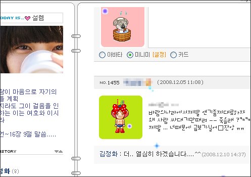김정화는 자신의 미니홈피 방명록에 한 네티즌이 "연기 좀 제대로 하라. 당신 때문에 보기 싫어진다"는 내용의 인신공격성 게시물이 올리자 "더 열심히 하겠다"는 댓글을 달았다.