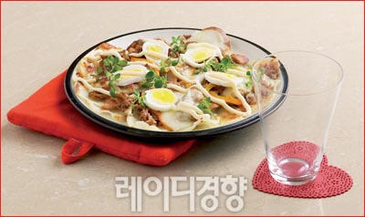 1 중하는 꼬리만 남기고 껍질을 벗긴다. 2 팬에 버터를 두르고 찬밥을 넣어 볶다가 소금, 후춧가루로 간한다. 3 ②에 크림수프를 넣어 고루 섞어 그라탕용 내열 오븐 용기에 담고 중하를 올린 뒤 피자치즈를 올려 170℃로 예열한 오븐에 노릇하게 구워 낸다.