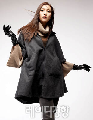 판초 스타일의 코트로 톤 다운된 컬러 배합이 더욱 멋스럽다. 가격미정, 에린브리니에.