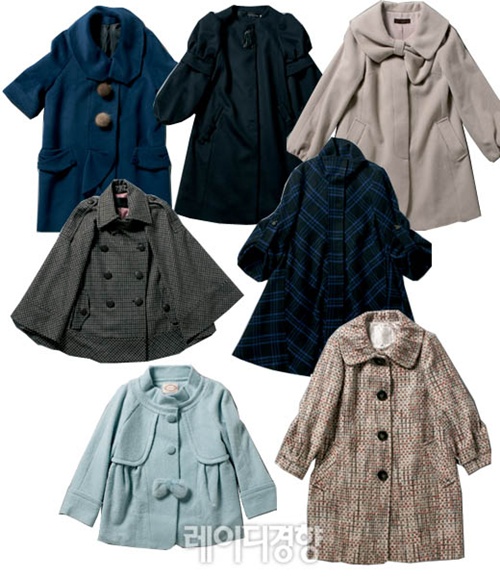 앞의 여밈 부분이 프릴 장식으로 처리돼 여성스럽고 퍼 버튼이 고급스러움을 더한다. 가격미정, 레니본. 반팔 소매에 긴 이너를 레이어드한 듯한 디자인이 멋스러운 벌룬 코트. 44만8천원, 매긴나잇브릿지.