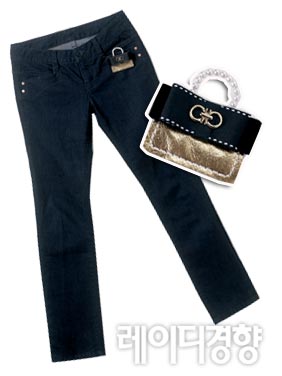 토트백 브로치+데님 팬츠 길거리 좌판을 뒤적이면 구두나 가방 등 패션 아이템을 본떠 만든 브로치가 눈에 많이 띈다. 밋밋한 팬츠 주머니 부분에 달면 시선을 위쪽으로 주목시켜 날씬해 보이는 효과가 있다.