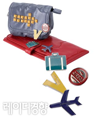 캐릭터 브로치+파우치와 여권 지갑 밋밋한 화장품 파우치와 여권 지갑에 캐릭터 브로치를 달아 센스 있게 스타일링해보자. 특히 여행 갈 때 비행기나 여행 가방 모양 브로치를 달면 여행 분위기 업!