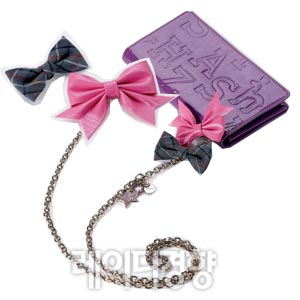 리본 브로치+미니 숄더백 심플하지만 컨셉트가 없는 가방에는 브로치 장식이 정답이다. 컬러풀한 미니 숄더백은 캐주얼이나 슈트 등 어디에도 잘 어울리지만, 경쾌한 데님 팬츠 룩을 스타일링할 때 가방 체인에 비비드한 리본 브로치를 달면 더욱 귀엽고 깜찍해 보인다.