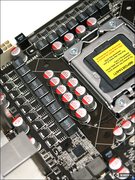 사용 목적이 목적이니만큼 전원부 구성부터가 빵빵하다. 16+2 페이즈 전원부는 어떠한 상황에서든지 안정적인 전원을 공급해 줄 것이다. 또한 EPU 프로세서를 통해 전력부 자동 전력 조절 기능으로 최소 전력만을 필요로 하는 인터넷 및 워드와 같은 가벼운 프로그램 실행 시에는 전력량을 적게, 반면, 포토샵 및 3D 게임 등 CPU를 많이 사용하는 프로그램 실행 시에는 원래의 전력으로 되돌려 주어, 전력 사용량에 있어 약 40% 더 연장된 사용 시간을 제공한다.