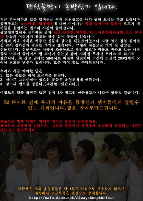 동방신기의 소송이 다가오는 가운데 그들 편에 서있는 우리가 도울힘이 있다면 최선을 다해야 한다고 생각합니다.