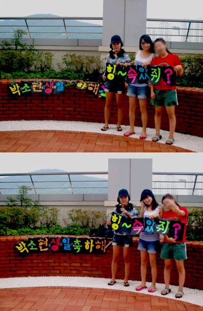 뒤에는 박소현 생일 축하 힝~속았지? 라는 플카와 함께 멀쩡하게 웃고 있는 제 친구