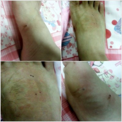 발을 잡아 안당겨서.. 구멍만 났어요; 구멍속으로 멍들고--;;