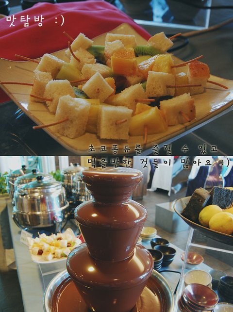 여기엔 빵과 과일이 있어서, 더 좋았던거 같아요.