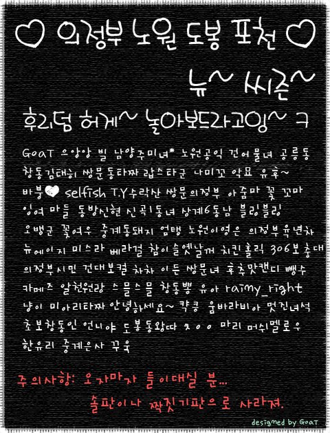그냥.... 여러분들이 조금이나마 편하게 판에 오시길 바라는..... 마음에 ㅎㅎ;;;