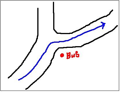 (파란색 화살표가 학교 가는 길 방향이고, 빨간점이 버스정류장이에요)