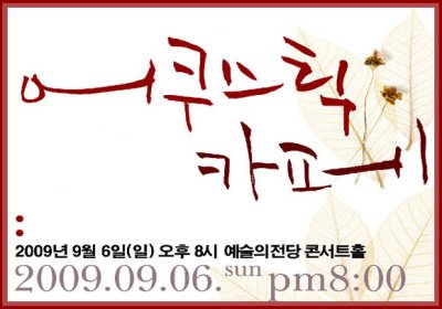 2009년 9월, 일본 뉴에이지 연주그룹 어쿠스틱카페가 가을의 문턱에 한국을 찾아온다. 수년간 싸이월드, 멜론 뉴에이지 차트 랭크, 지난 3월 첫 내한공연 매진 등 국내팬들의 한결같은 성원에 보답코자 9월 6일 일요일 저녁 8시 예술의 전당 콘서트 홀에서 다시 한 번 내한공연을