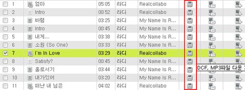 1. 멜론플레이어 목록 오른쪽에 있는 mp3파일 다운로드 버튼 클릭합니다