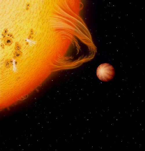 왜냐하면 태양의 중심은 수축해서 더 뜨거워지지만, 표면 온도는 약간 내려갈 것이라고 하고 높아진 중심의 온도는 수소가 헬륨으로 변하는 속도를 증가 시키고, 태양이 내는 에너지의 전체 양도 높일 것이다. 태양의 바깥 부분은 5000만~6000만km 까지 팽창하게 되는데, 이 거리는 대체로 태양에서 가장 가까운 행성인 수성까지의 거리에 해당한다. 이 때 태양은 적색거성이 되며, 지구는 온도가 너무 올라가 생물들이 살 수 없을 것이다. 그리고 나서 점점 커져서 수성~화성까지 삼키고 나서 수성~화성은 없어져요. 태양이 적색거성이 되어 열에너지를 모두 사용하고 나서 폭발을 해서 태양이 지구 정도의 크기로 수축하여 백색왜성이 되어 수십 억년이 지나면 모든 에너지를 다 써버려 차갑고 검은 흑색왜성이 된다. 이것이 지구의 종말이다.