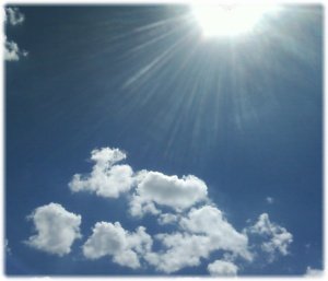 쪽빛 하늘, 하얀 구름, 눈부신 햇살