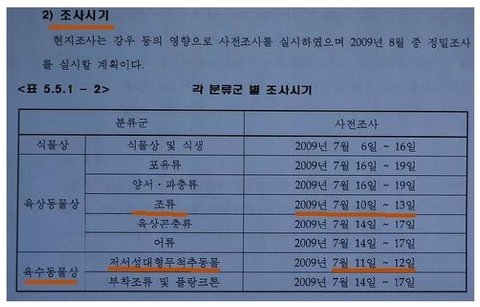 단 3~4일 만에 현장 조사를 끝낸 4대강사업 환경영향평가서가 얼마나 대단한지 조류에 관한 보고서를 보면 금방 알 수 있습니다.