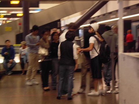 열렬히 기다리던 팬 한무더기 ( 백인이랑 동남아시안으로 보였..)만 딱 한번 소리를 - - 지르고 나오는 순간 기다리던 모든 사람들(해봤자 스무명..)이 어머 어떻게 하냐며..