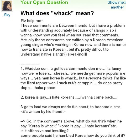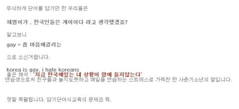 애초 논란의 시작이었던 Korea is gay. I hate Korean.은 쏙 빼먹고