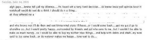 기사에 나온 글 외에도 재범이의 고민,투정이 모두 섞인 myspace,xanga 글을 시간 순으로 나열했다.