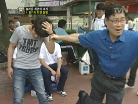 길가는사람들에게 양해를 구한뒤 최면을 걸고계시더라구요.
