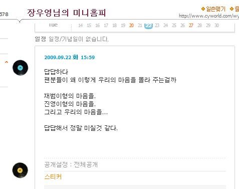 팬들이 마음을몰라준다는 우영군의 일기 .....................