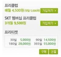 참고로 프리클럽안에서도 또 여러종류의 상품이 있는데