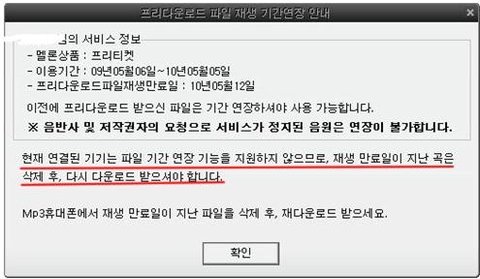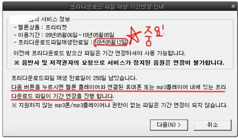 파일 기간 연장이 요구 되는 7일 동안에 멜론플레이어에 한번이라도 접속을 하게되면