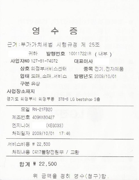 영수증을 받았는데 22500원이나 받는겁니다