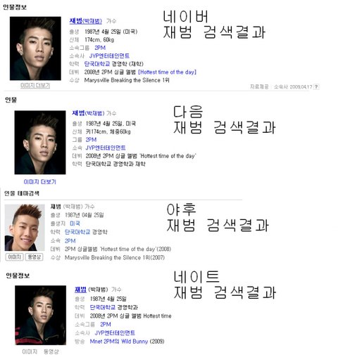제가 포털사이트 4곳에 재범을 검색해본 결과는