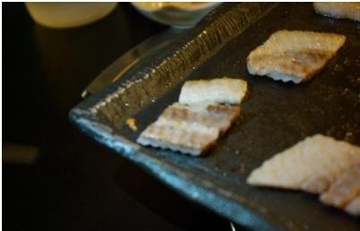 접시에 담긴 냉동 겹살이는 약간의 공기와 접촉하게되어