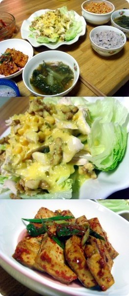 (친구가 놀러 왔던 어느 저녁 식단..배추된장국, 콩나물무침, 닭가슴살 샐러드, 두부조림...잇힝~!!-0-!!)