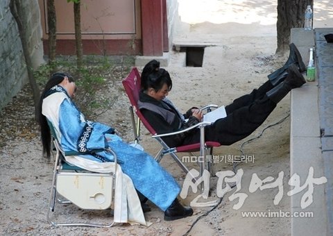 선덕여왕 촬영 중간 의자에서 졸다가 대청마루에서 곤히 자는 유승호+_+