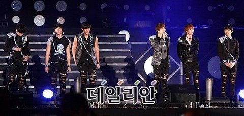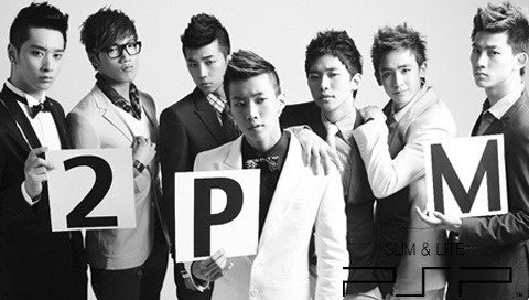 저 구석에 6명이 있는 아이들이 2PM입니다.