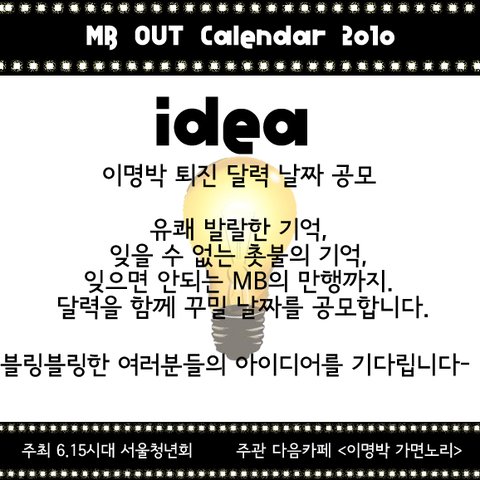 <이명박 퇴진 달력>을 통해 2010년 우리가 해야 할 일이 무엇인지 잊지 않고 살아가는 촛불이 되었으면 합니다.