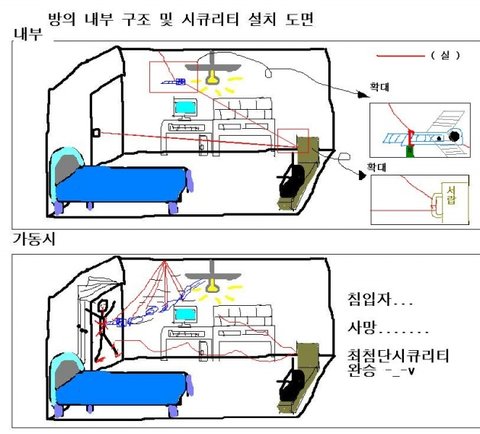 당시 방의 구조와 미친 형이 제작한 신개념 시큐리티를 아래의 그림으로 보시지요 ~!ㅋ