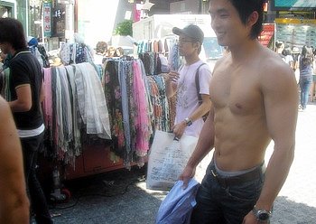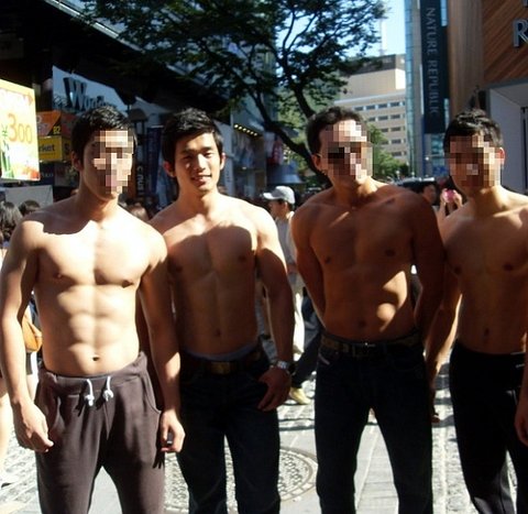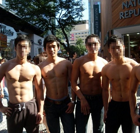 먼저 출연자들 한분 한분씩 인터뷰를 했습니다 어디사는 누구이고 나이등등... 인터뷰를 마치고 시작된 건 상체 탈의 후 명동한복판을 걷는 것이였습니다
