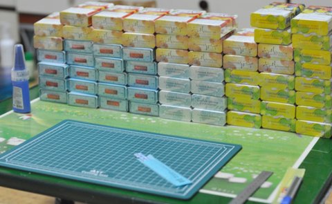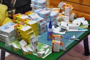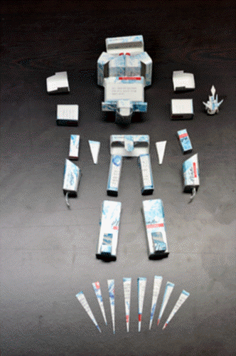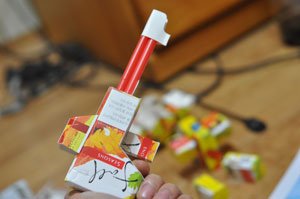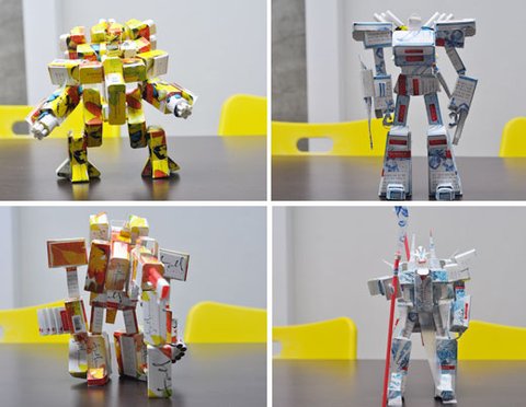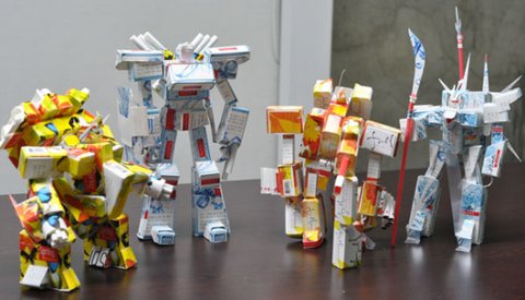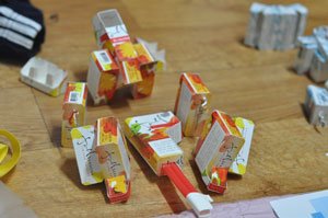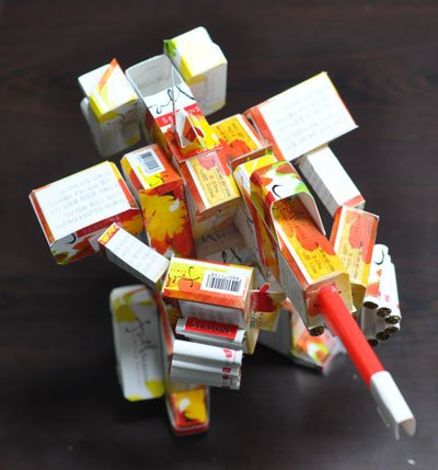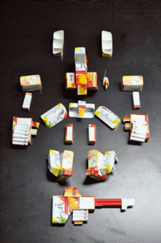 담배 곽을 분해하고 끼어 맞추고 해서 디테일을 만들어 몸통을 만들고