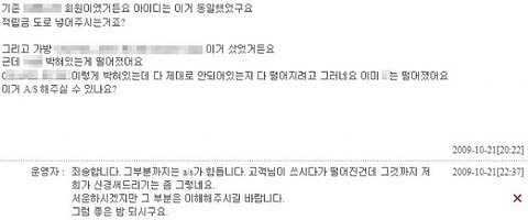 차라리 처음부터 A/S 는 해줄 수 없다고 하셨으면 이렇게 기분이 나쁘진 않을텐데..