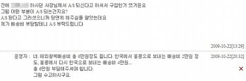 네.....이렇네요 뭐.....이거 후로도 대화를 좀 했는데 뭐 결국 배송비 내면 A/S 해주겠다는 그런 말 이였어요...