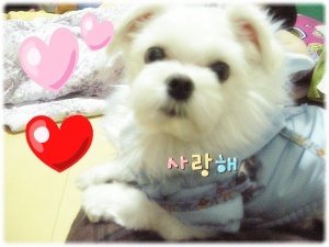 : 어쩌다가 엄마한테 강아지가 들어왔는데... 얘가 하얗다 쪼꼬맣고 사내야