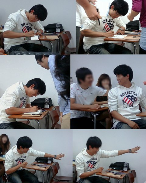 잘생긴 옥택연...학교생활 되게 열심히 한다고 하던데요~ 근데 무대위에서랑 완전 다른 모습...닮은 사람이 아닌가 싶을 정도로 털털하게 어울리며 공부한다네요...다들 짐승돌의 옥택연이 아닌것 같다...라는 반응?