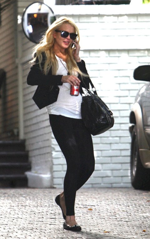 콜라 하나랑 백 하나만 들고 통화하면서 나타난 린제이 로한