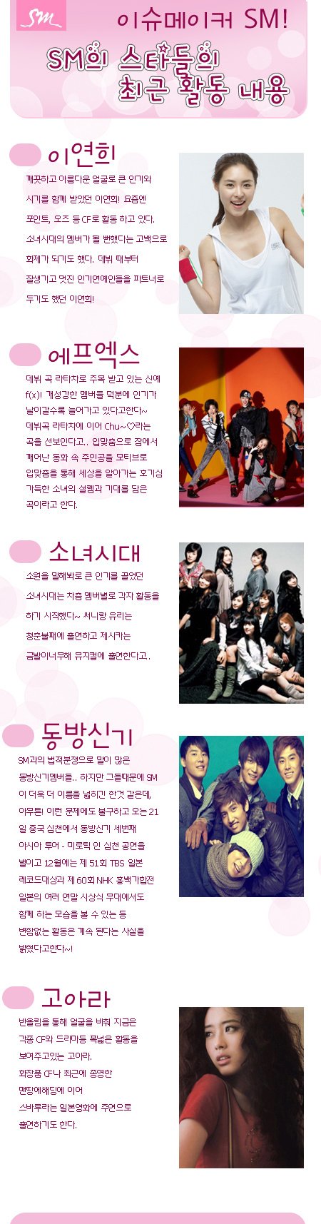 SM 이슈메이커! SM소속 연예인들의 최근 활동근황 이연희,고아라 등