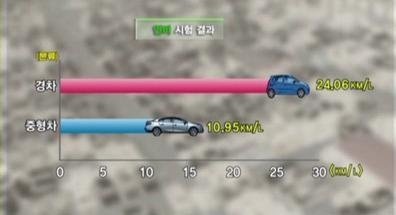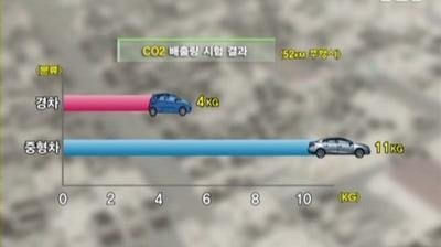 경차와 중형차가 똑같이 50KM를 주행하고 연비와 CO2 배출량을 비교해봤는데 우와 눈에 띄게 경차가 훌륭하더라구요.