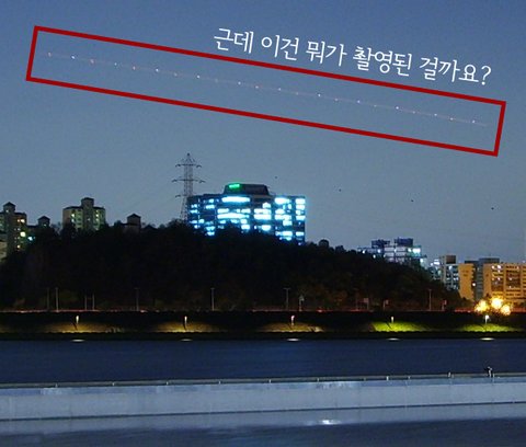 근데 집에와서 확인해보니, 하늘에 무엇인가 알수없는 불빛이 한줄로