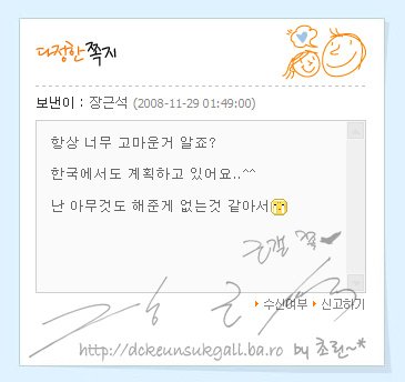 저 쪽지를 보며..저는 정말,, 장근석이란 배우가 더더더 좋아졌습니다.